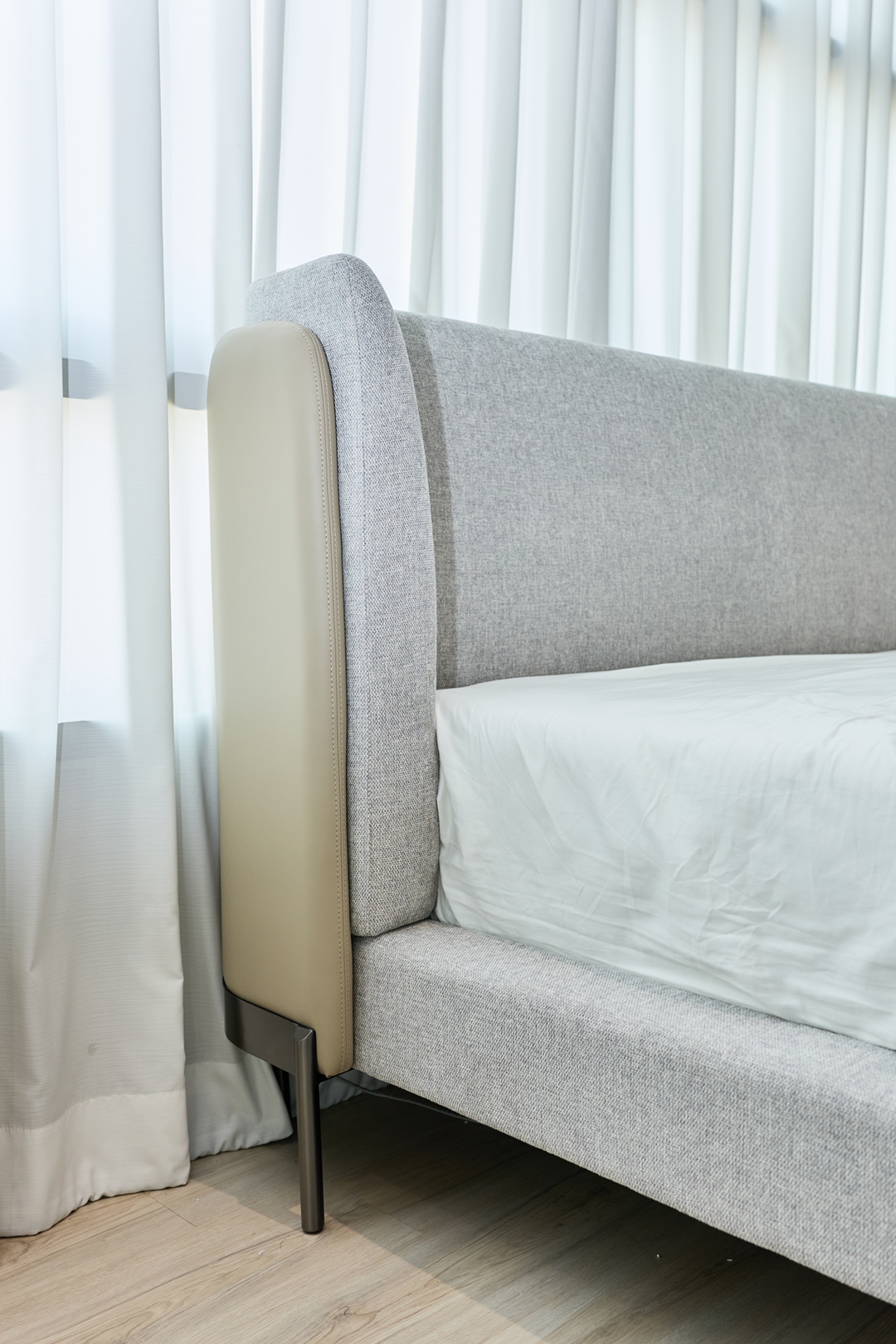 FEATURES * Modern Design * Fabric & Microfiber Leather. Hardwood construction with Stainless steel.
