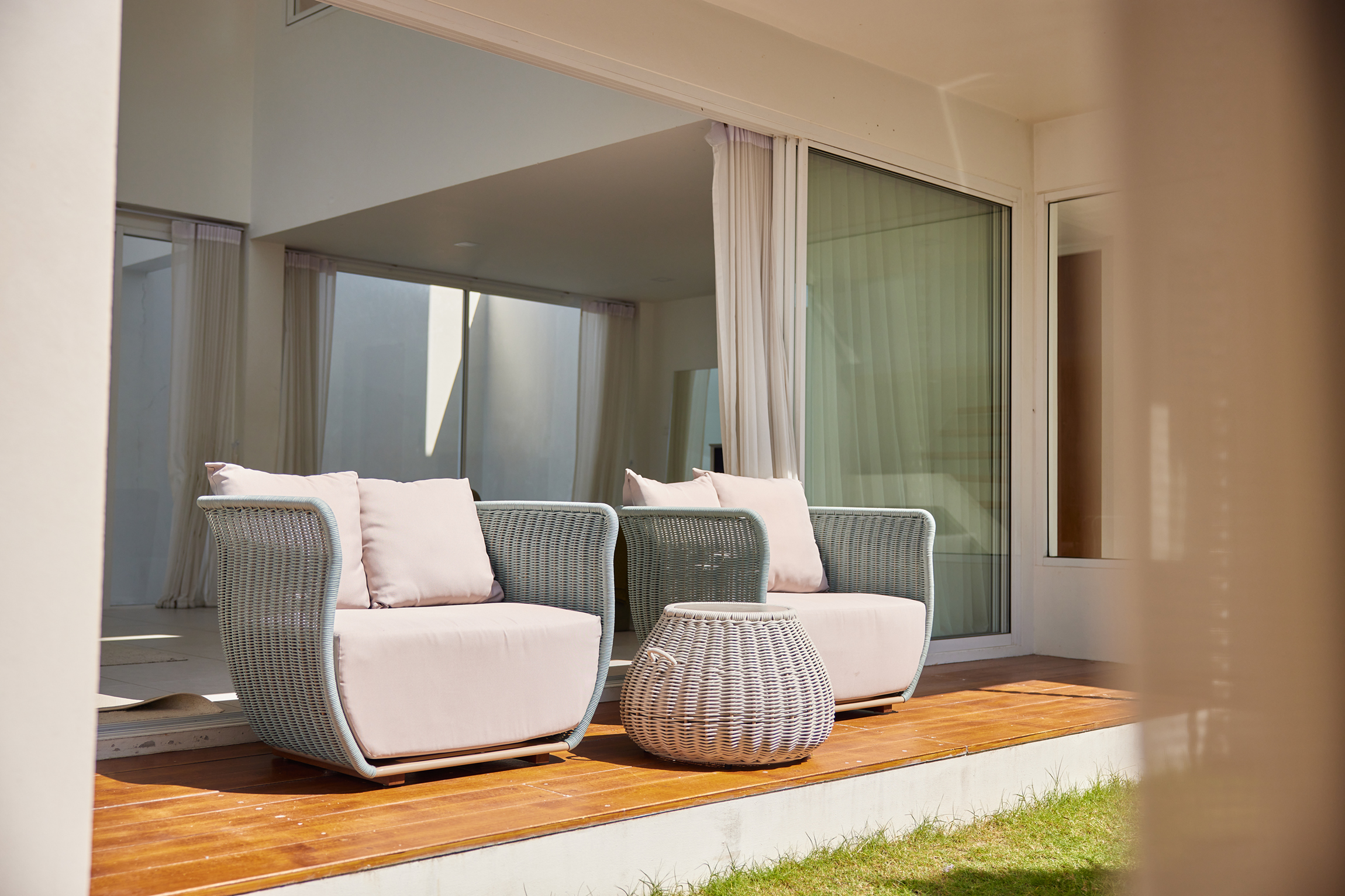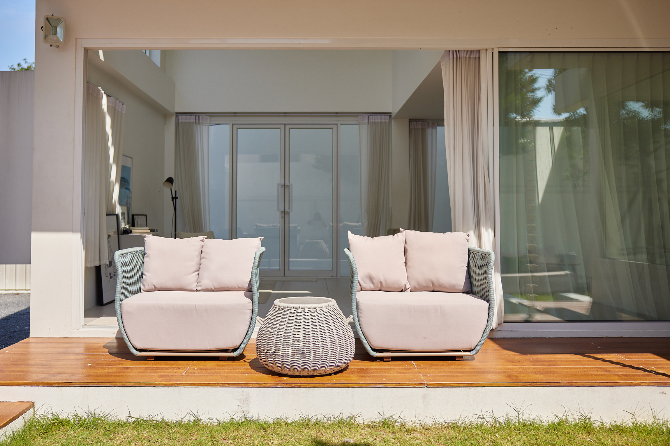 FEATURES * Modern Design * Fabric : 100% Olefin, 1000H colour fastness * Sponge : 33.6 cm. thickness,35D density sponge * Rope : 100% Olefin rope * Aluminum : 2.0 mm. thickness aluminum