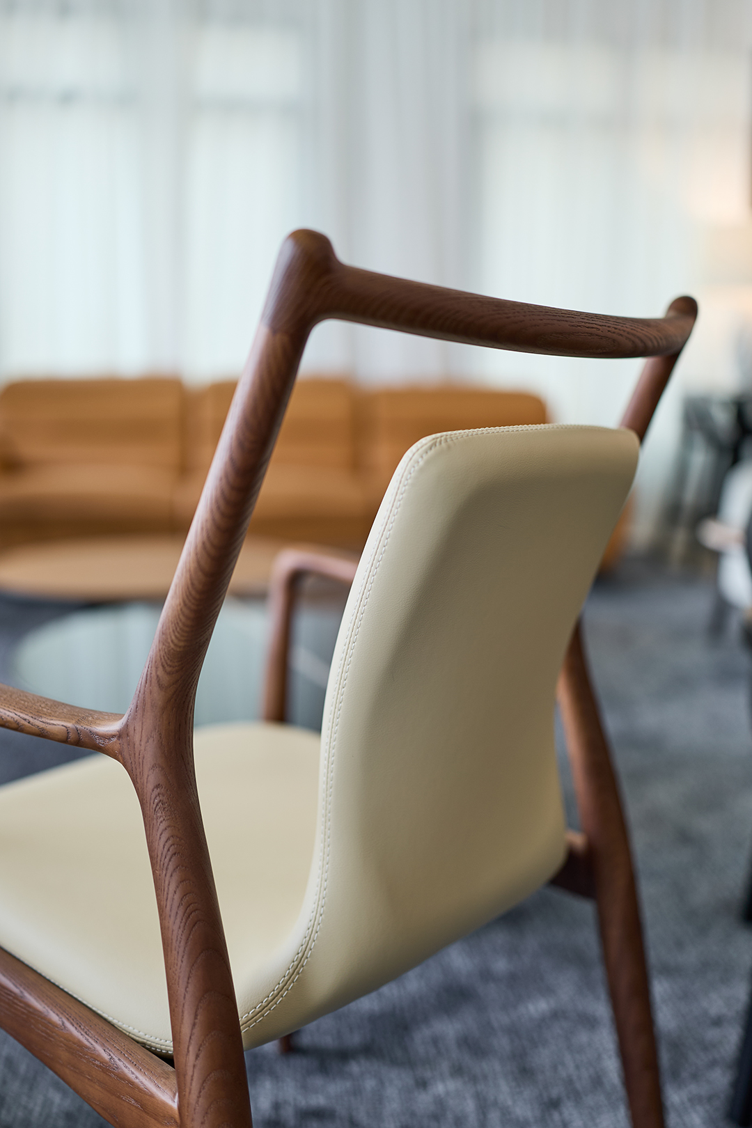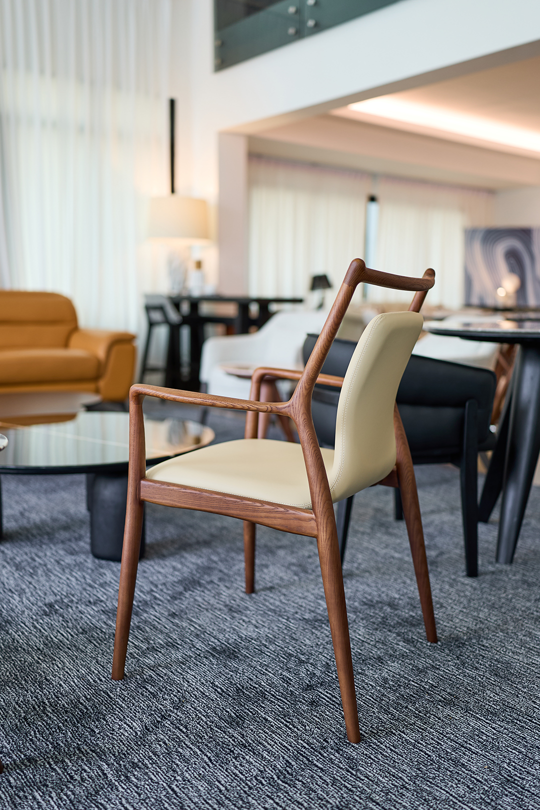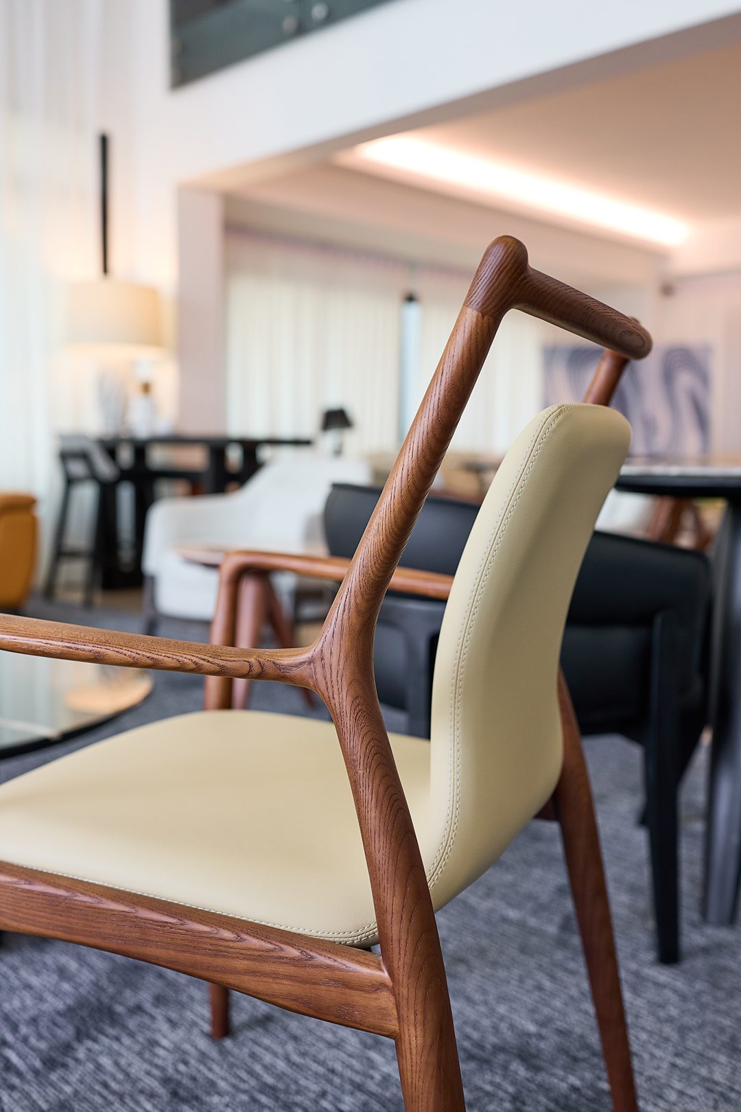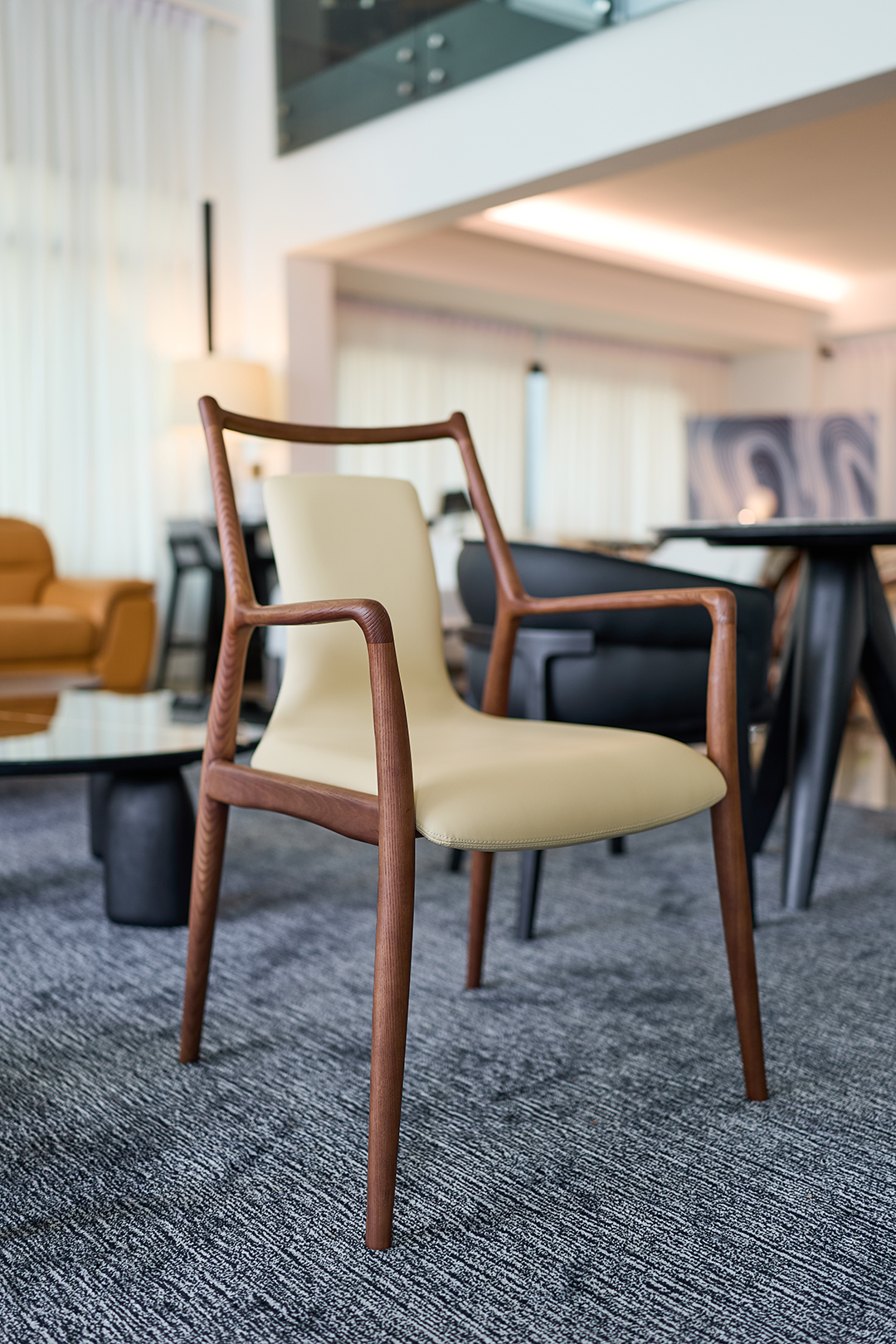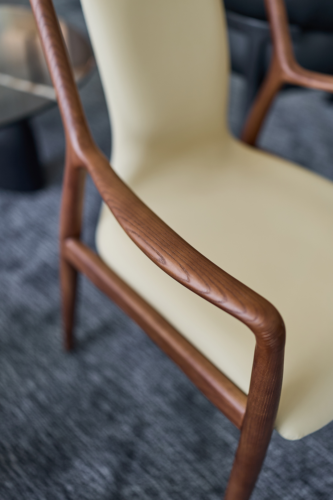 Ibla Chair,Chair in Ash wood , Seat and Backrest in Fabric or Microfiber Leather.