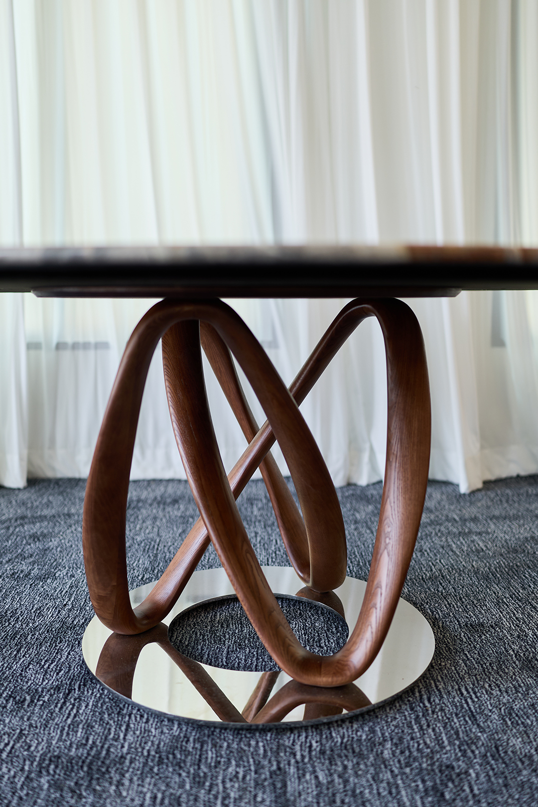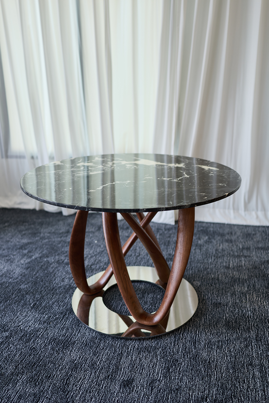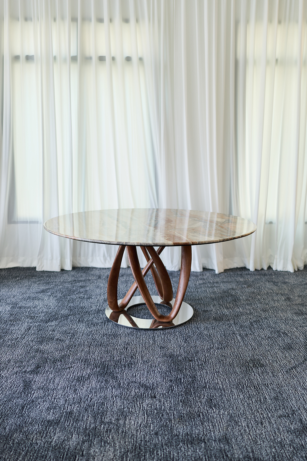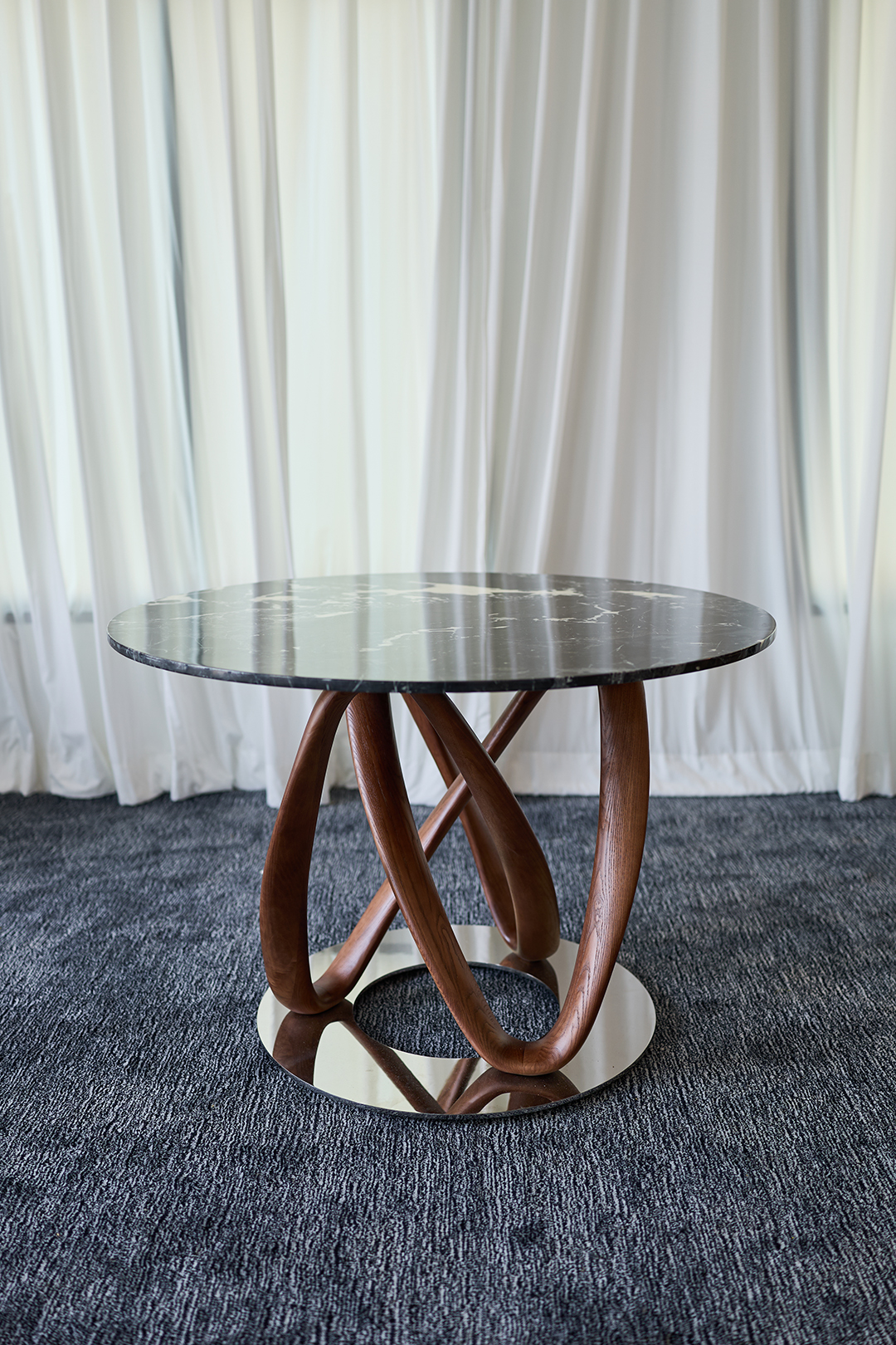 FEATURES * Modern Design * Premium ancient Oak wood leg Natural marble top with luxury dining chairs