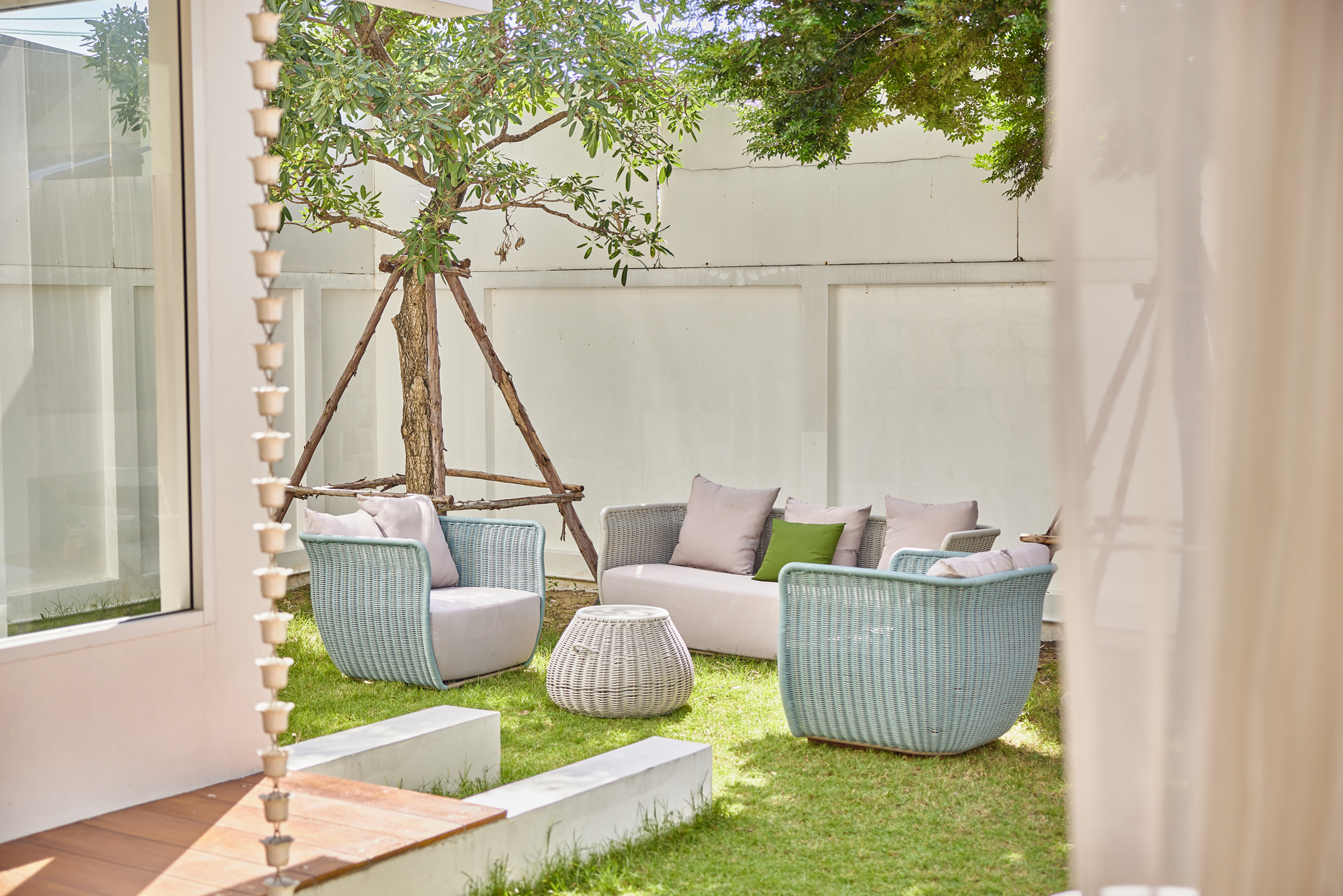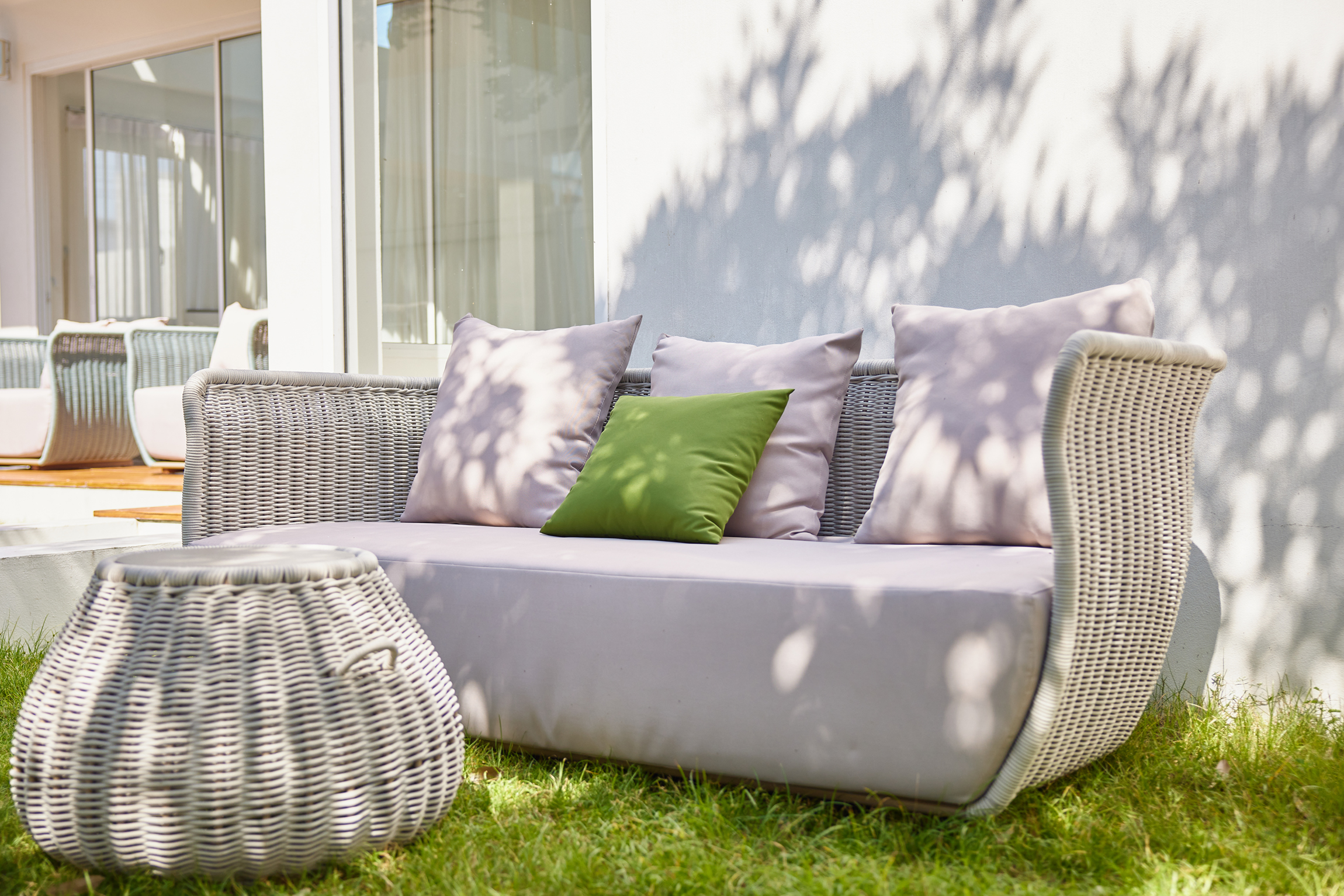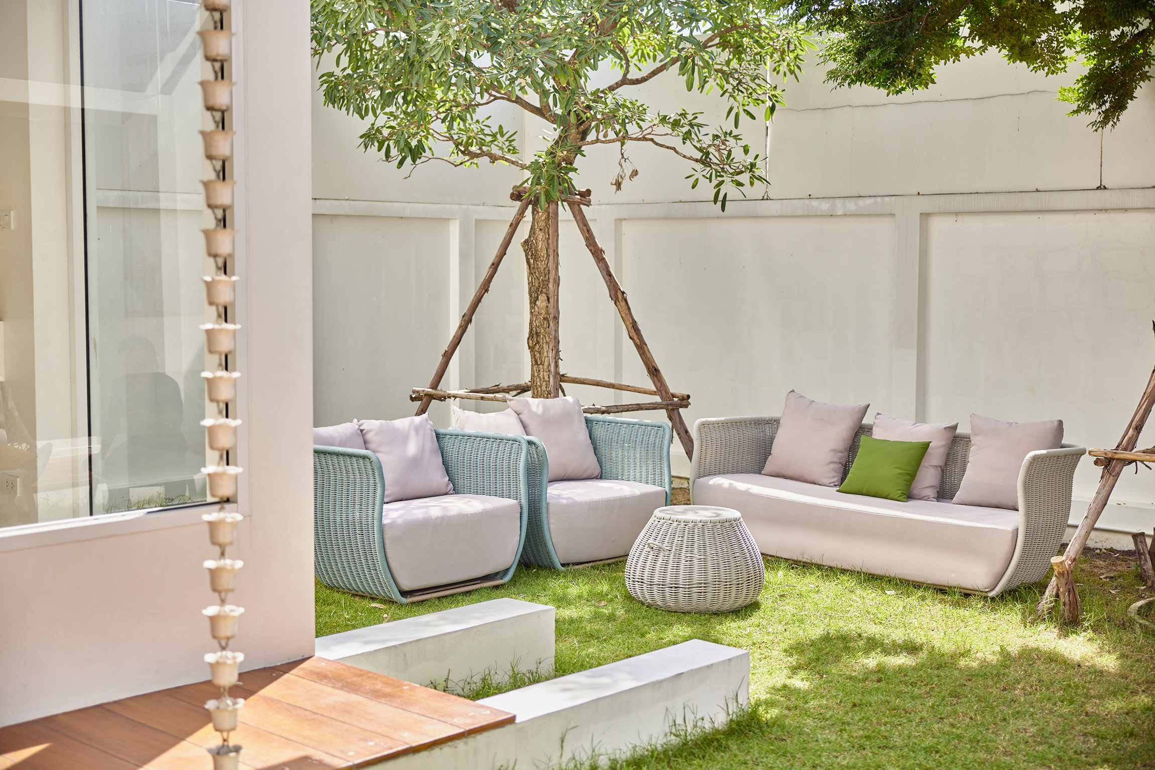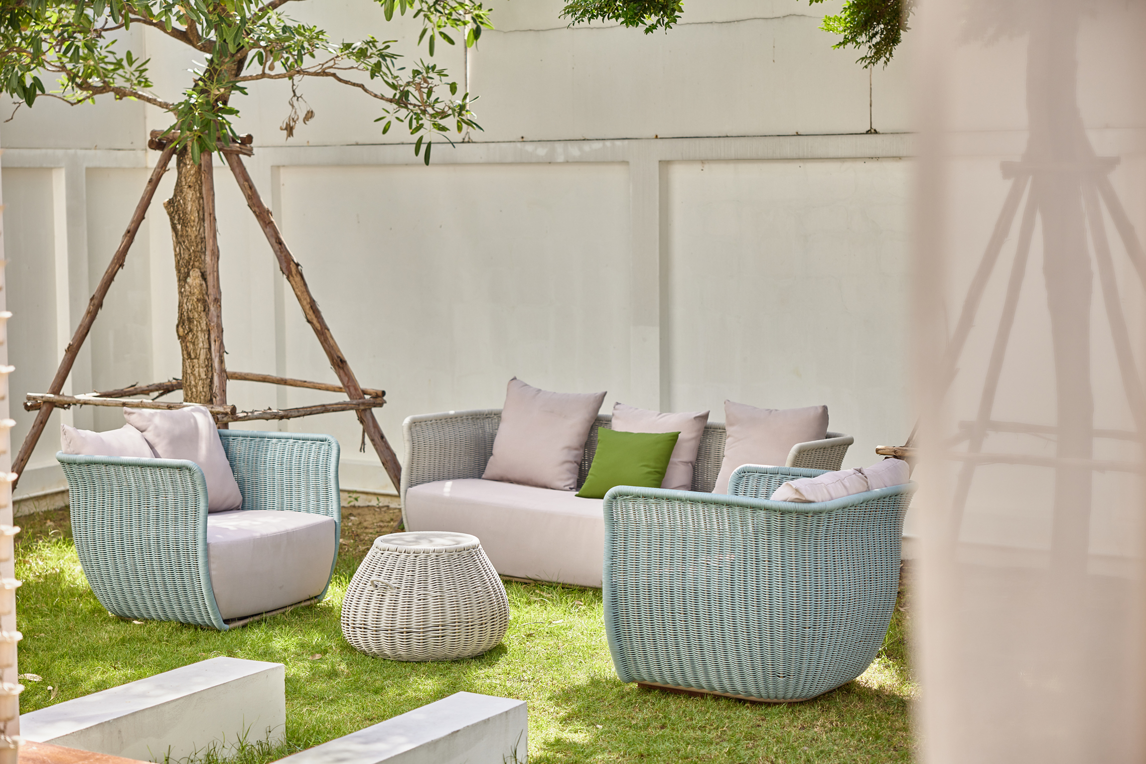 FEATURES * Modern Design * Fabric : 100% Olefin, 1000H colour fastness * Sponge : 33.6 cm. thickness,35D density sponge * Rope : 100% Olefin rope * Aluminum : 2.0 mm. thickness aluminum